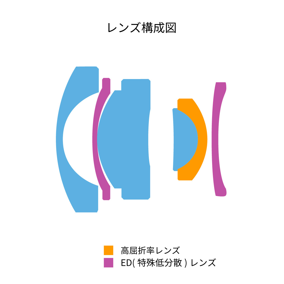 | レンズ構成 | 5群7枚(高屈折率レンズ1枚、EDレンズ2枚含む) |