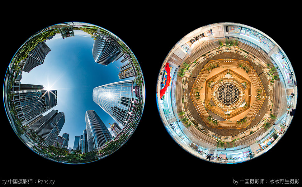 全方位を包み込むような映像表現。世界を球体に凝縮したかのようなユニークな写真を撮影可能。