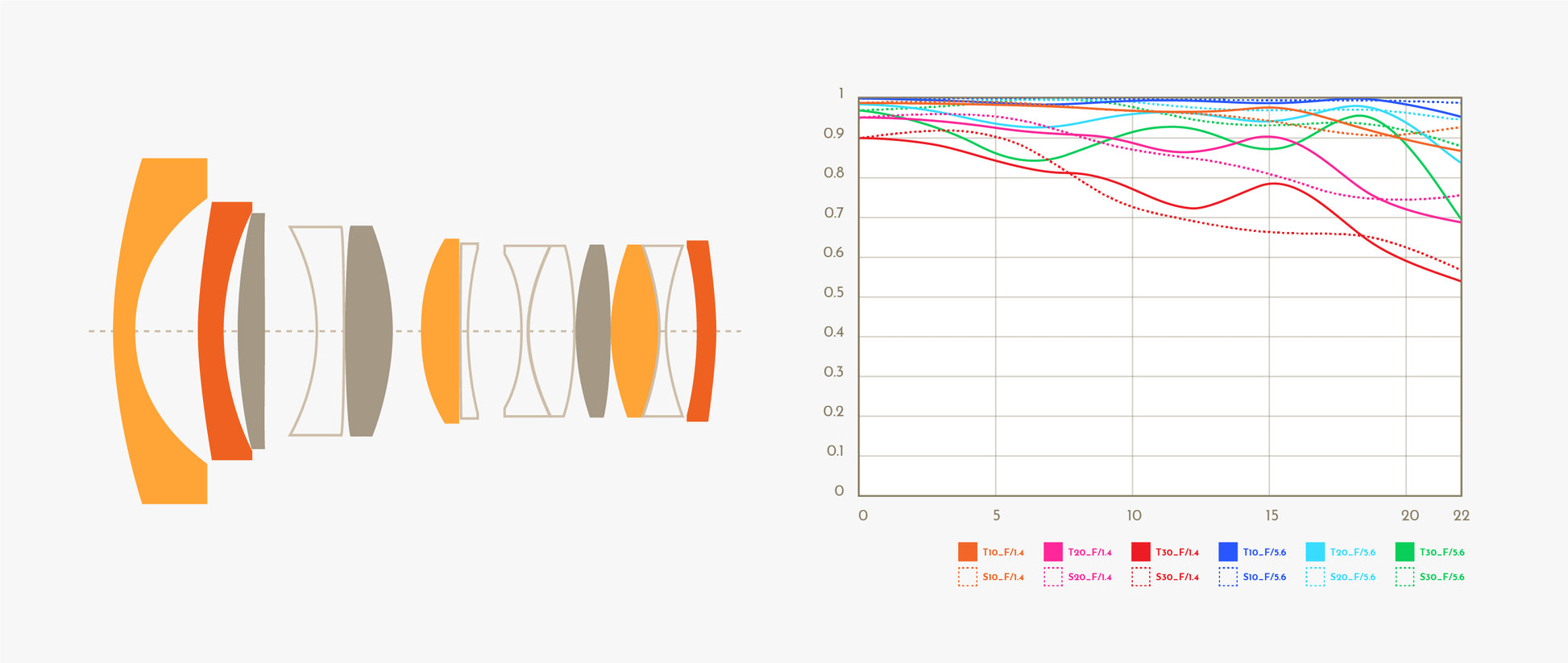 非球面レンズ2枚、EDレンズ3枚、高屈折レンズ3枚を組み合わせた高度な光学設計を採用。色収差やフレアを効果的に抑え、画面中心から周辺まで高いシャープネスとクリアな解像度を実現します。さらに、Thypochの高精度非球面レンズ技術により、ボケ内のオニオンリングを抑制し、なめらかで美しいボケ表現を可能にします。