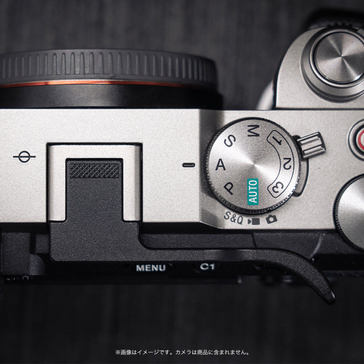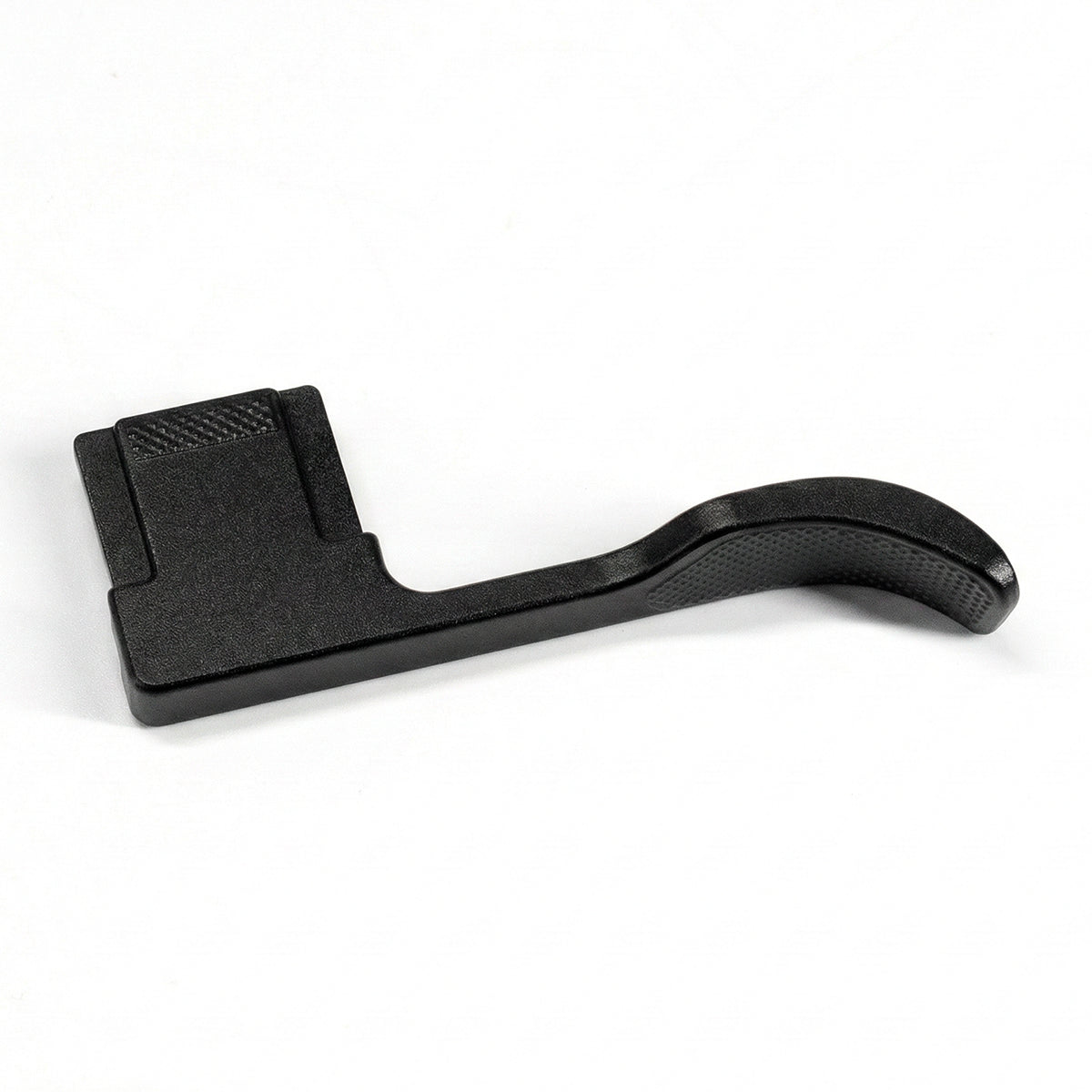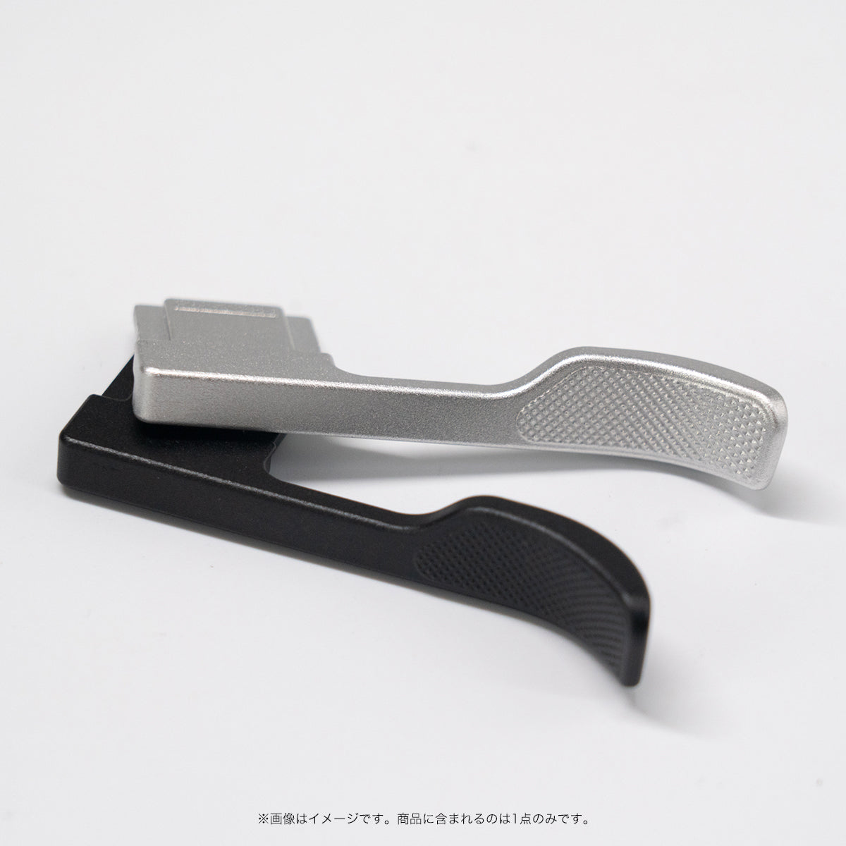 本製品は、カメラ本体のデザインを損なうことなく調和する、シンプルかつ上品な外観を備えたサムレストです。 主張を抑えたデザインにより「道具としての美しさ」を際立たせ、カメラとの一体感を高めます。親指が触れる部分には、滑り止め効果を高めるCNCによる特殊加工のテクスチャーを施したグリップを採用することで、安定したホールド感と優れた操作性を実現し、撮影時のブレを効果的に抑えます。また、素材や仕上げの質感にもこだわり、心地よい使用感と高い耐久性を両立。機能性と美しさを兼ね備えた、カメラ愛好家におすすめのアクセサリーです。