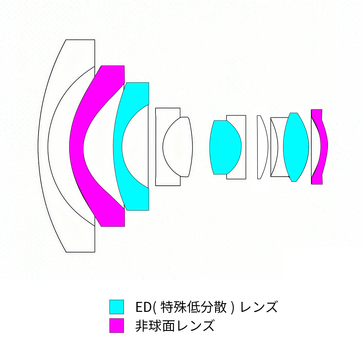| レンズ構成 | 8群11枚(EDレンズ 3枚、非球面レンズ2枚含む) |
